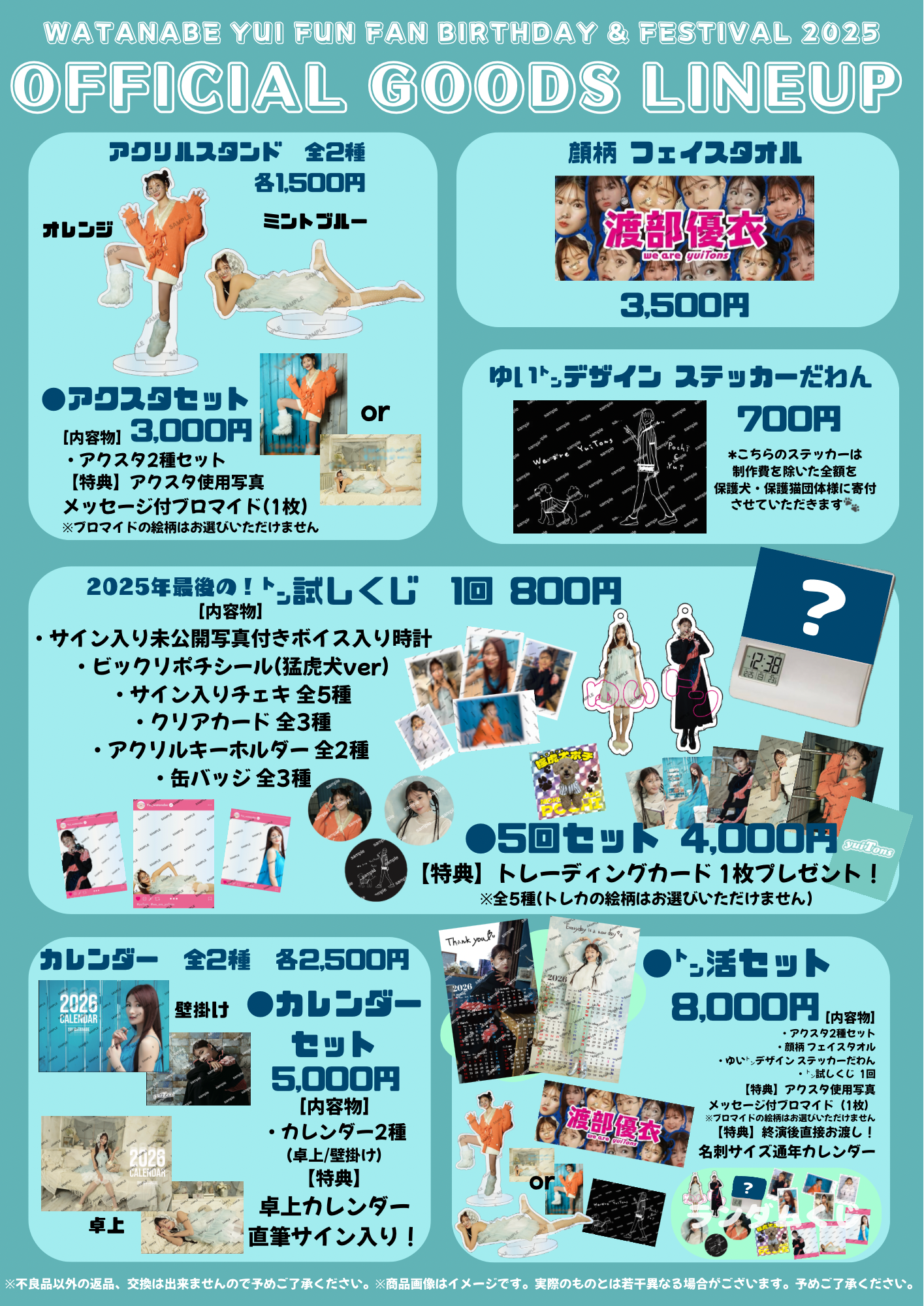 渡部優衣 FUN FAN BIRTHDAY & FESTIVAL 2025 追加情報&グッズ情報 NEW